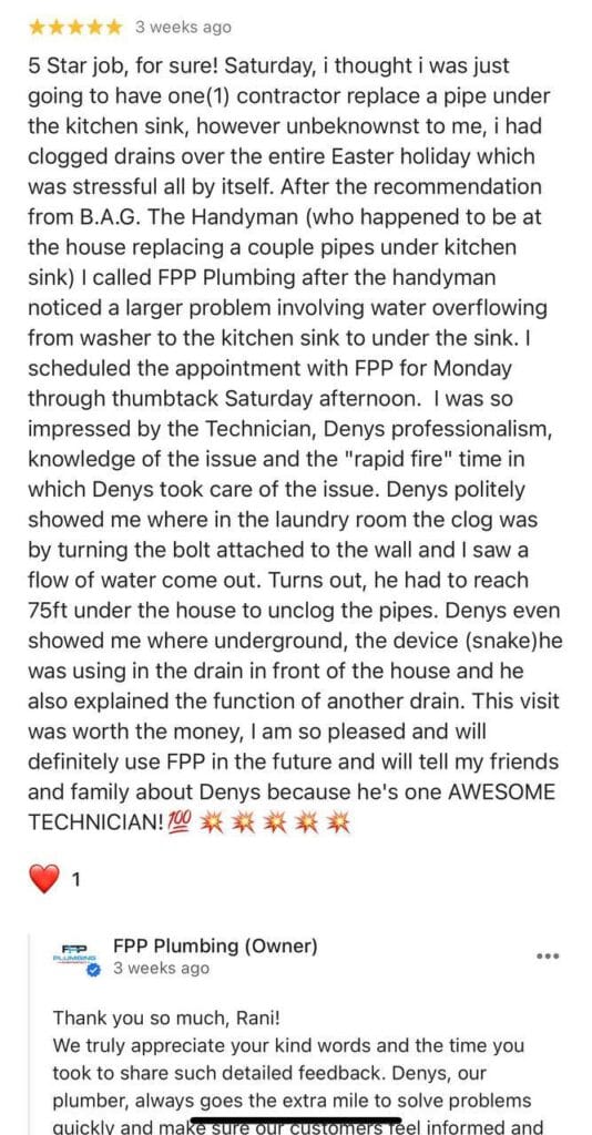 We get calls every week from homes with flooded garages, leaking heaters, or clogged-up drains.We’re FPP Plumbing. Licensed, nearby, and ready.