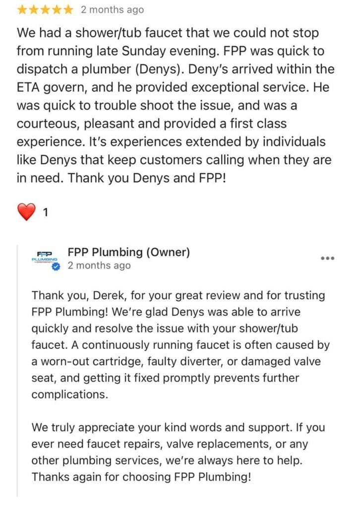 • Shower cartridges and faucet shut-offsWe work clean. We show up when we say we will. And we fix it right.